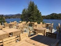 Smoke Signals Restaurant uses Goldenteak Teak Outdoor Dining Furniture on its patio overlooking Lake Placid. Their layout features several Teak Harvest Tables, Teak Round Tables (root design), Teak Square Tables and our Teak Ventura Stacking Chairs. We hope you get an opportunity to visit there when in the neighbourhood.